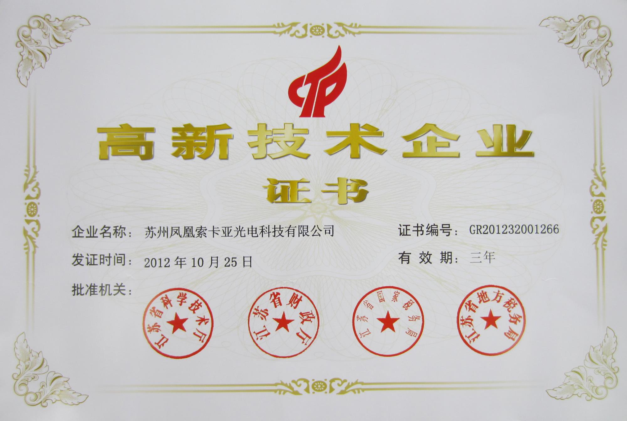高新技術企業證書