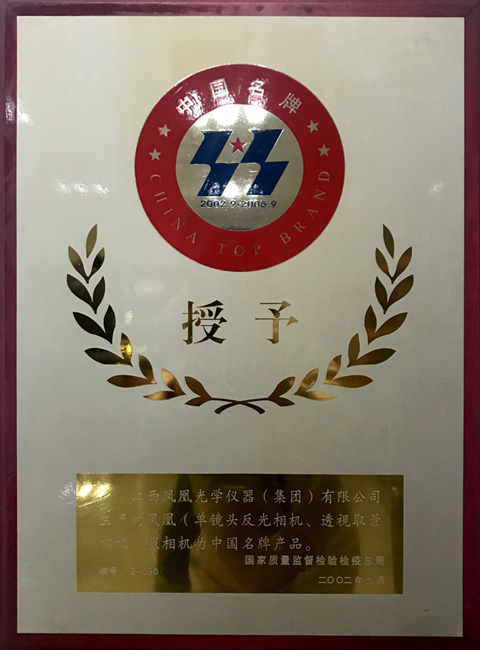 二〇〇二年國家質量監督檢驗檢疫總局授予鳳凰(單鏡頭反光相機、透視取景相機、照相機)為中國名牌產品