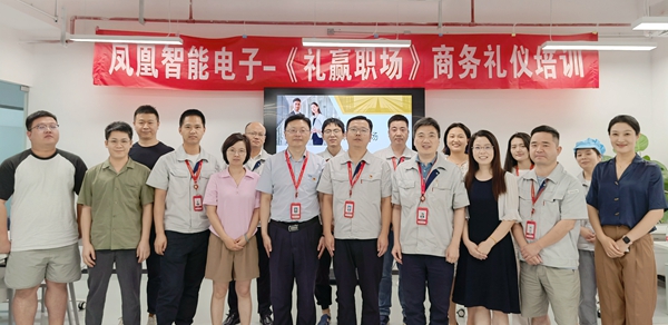 為提升企業的整體商務形象,增強員工的自身素質和商務能力,鳳凰智能電子于8月12日上午在2號樓1樓舉辦《禮儀職場》的商務禮儀培訓。鳳凰智能電子副總經理王萬兵,總經理助理趙江、王濤,部門經理及相關人員共二十余人參加。此次培訓由凰潮(杭州)文化傳媒有限公司專業人員擔任主講人。