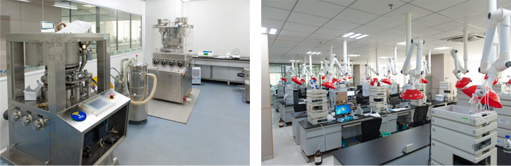 研發(fā)中心化學(xué)部門擁有150余個全鋼通風(fēng)櫥及常規(guī)有機合成裝置;高溫及低溫反應(yīng)裝置(5L~100L;-70~+200℃),惰性氣體保護及無水無氧反應(yīng)系統(tǒng);0.5L-20L高壓氫化反應(yīng)釜;API生產(chǎn)基地具備數(shù)十臺100L-1000L反應(yīng)釜及200L高壓氫化反應(yīng)釜;信息中心擁有SciFinder, Reaxys等專業(yè)數(shù)據(jù)庫來支持各項研發(fā)需求,使用CBIS系統(tǒng)數(shù)據(jù)庫來儲存和管理內(nèi)部數(shù)據(jù)。研發(fā)中心質(zhì)量分析和藥物制劑部門主要儀器設(shè)備均為國際國內(nèi)知名品牌: