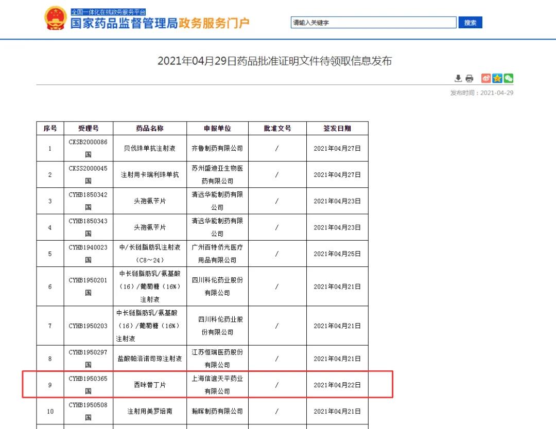 2021年4月22日,國家藥品監督管理局正式發布通知,華威醫藥受上海信誼天平藥業有限公司委托的西咪替丁片項目正式通過仿制藥質量和療效一致性評價。值得關注的是,這是國內第二家通過西咪替丁片的企業。