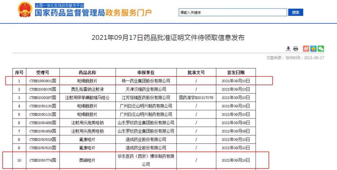 近日,國家藥品監(jiān)督管理局正式發(fā)布通知,華威醫(yī)藥受華東醫(yī)藥(西安)博華制藥有限公司委托的奧硝唑片項目正式通過仿制藥質量和療效一致性評價。