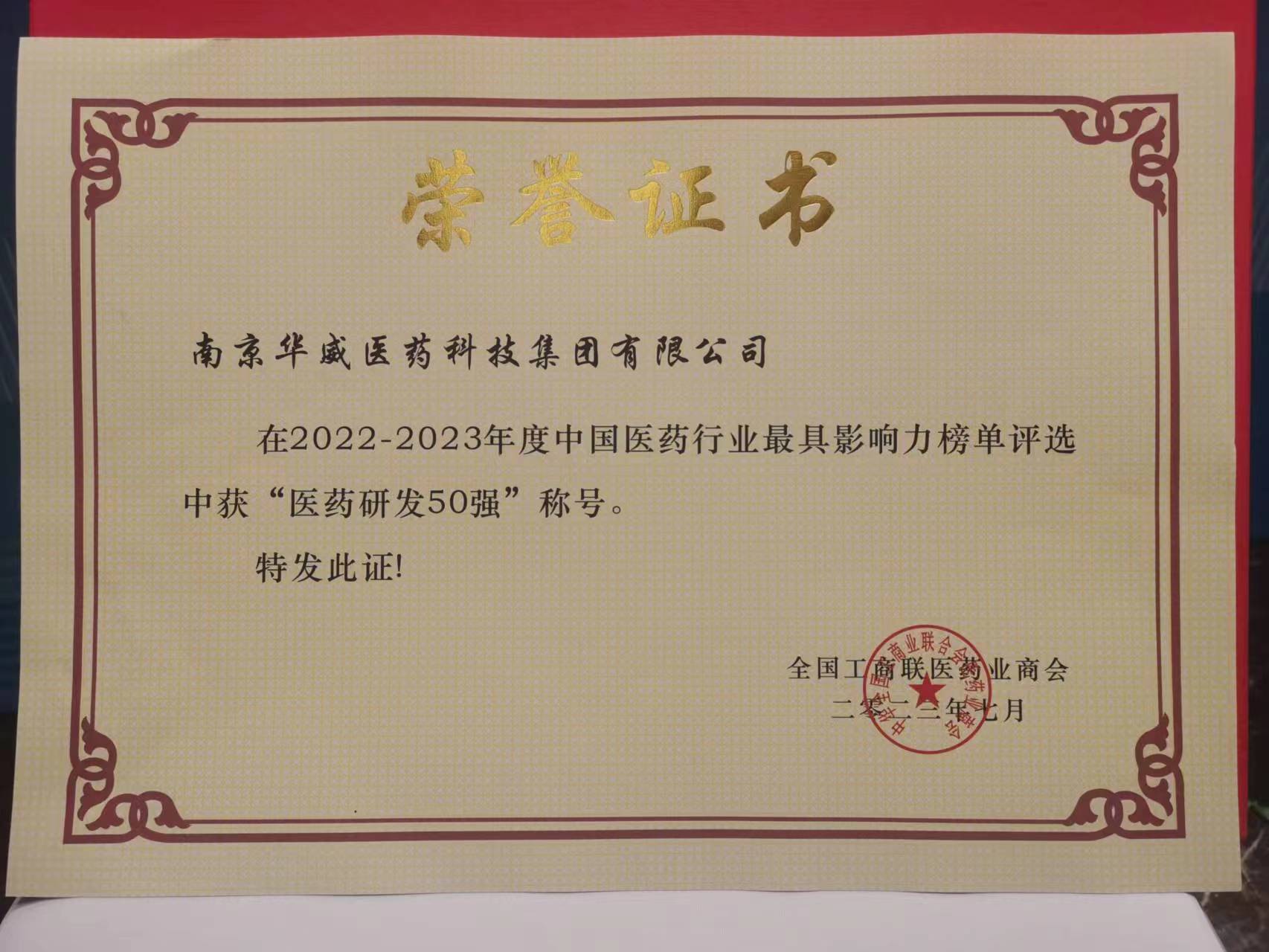 2023年7月4日,由全國工商聯(lián)醫(yī)藥業(yè)商會、黑龍江省工商聯(lián)、黑龍江省發(fā)改委共同主辦的“2022-2023年度中國醫(yī)藥行業(yè)最具影響力榜單發(fā)布會第十五屆中國醫(yī)藥產(chǎn)業(yè)發(fā)展高峰論壇”正式發(fā)布了——“2022-2023年度中國醫(yī)藥行業(yè)最具影響力榜單”,華威醫(yī)藥憑借自身雄厚實力再次榮耀入選“中國醫(yī)藥研發(fā)50強(qiáng)企業(yè)“。