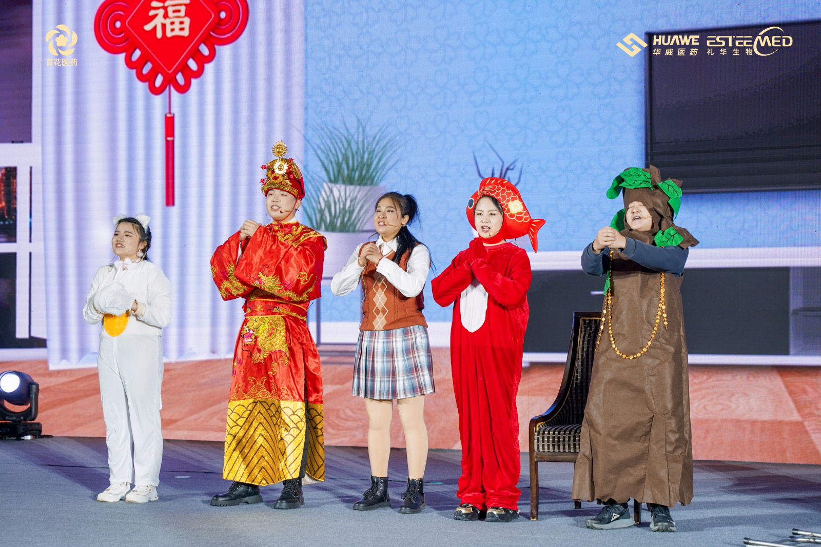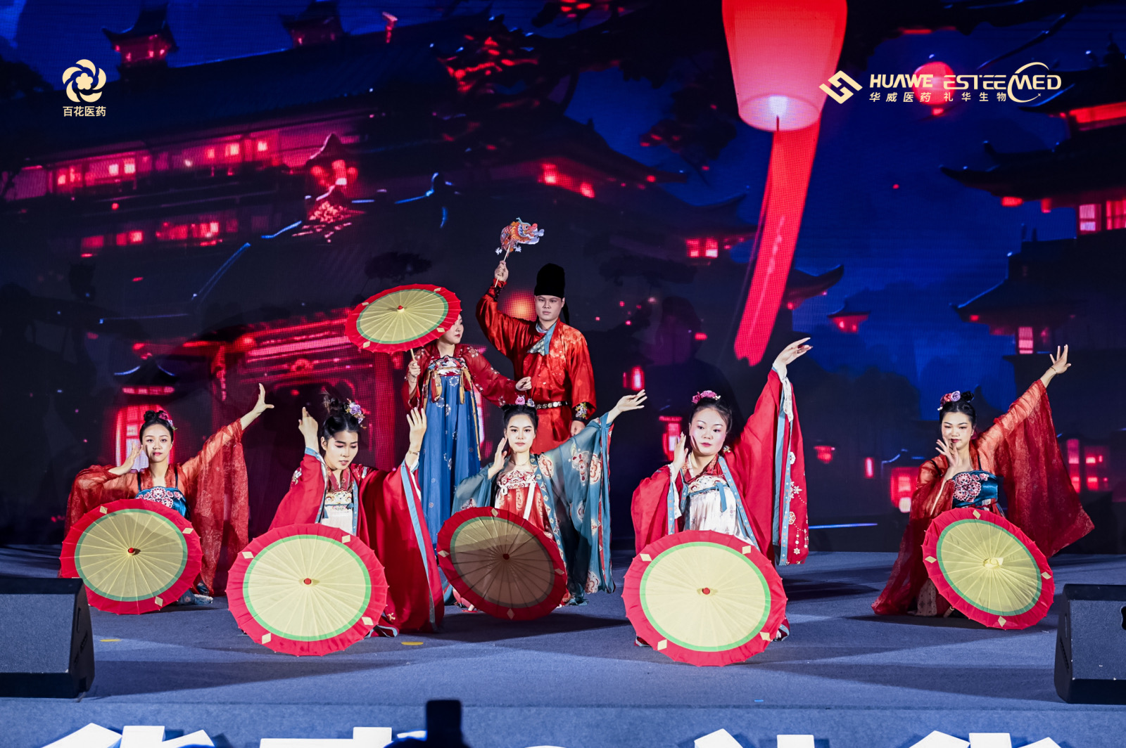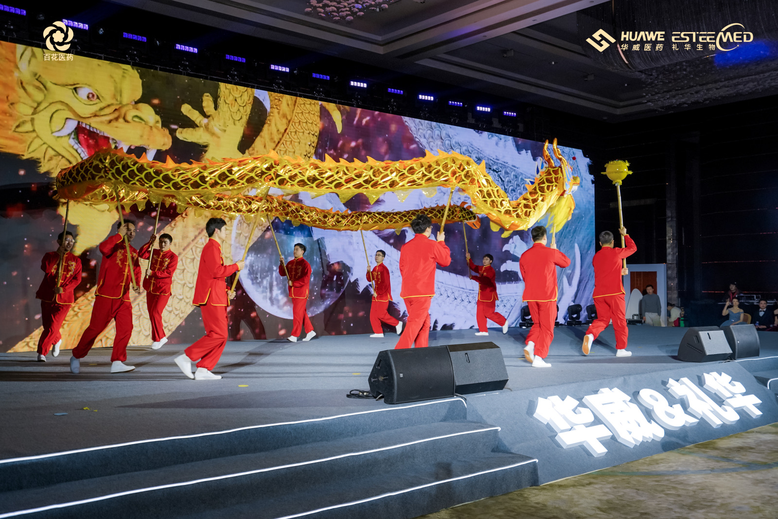 氣勢恢宏、勢如破竹的舞龍開場秀《龍耀九州》、行云流水輕盈翩躚的中華古典舞《百舞驚鴻》、掌握財富密碼,讓現場氛圍感滿滿的小品《財神來敲我家門》、奔放節奏,曼妙身姿的舞蹈《疆舞飛揚》、用歌曲訴說遙遠星河神秘浪漫的獨唱《水星記》、將藥研故事搬上舞臺,以輕松幽默的方式展現工作時光的小品《誰來拯救周末》、青春律動的時尚舞蹈《Miniskrit》、京劇發展下重要里程碑代表作——戲曲《梨花頌》、獨具匠心,用聲音“描繪”角色的配音秀《公司的那些事》以及以服飾為載體,以走秀為舞臺,跨越時空華麗邂逅的走秀《漢風雅韻》,讓2024年會上半場的氣氛持續沸騰。