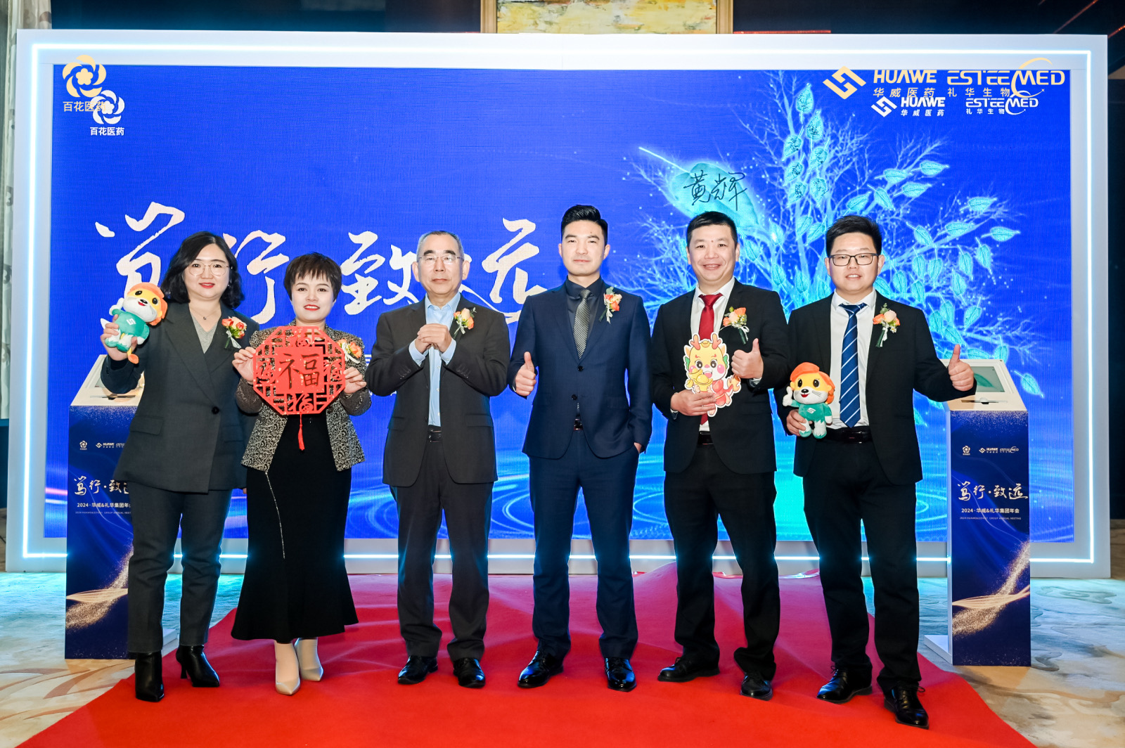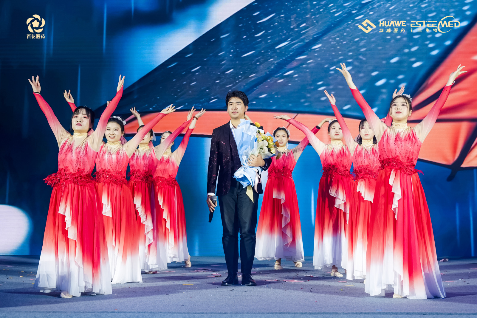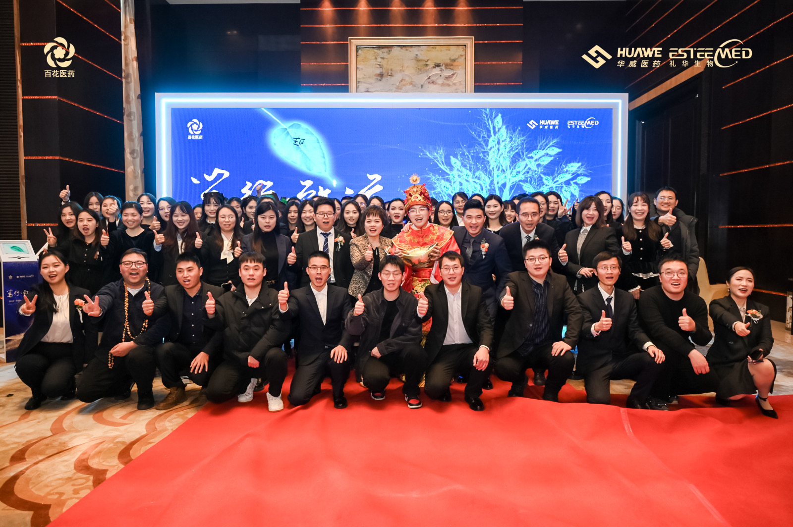 氣勢恢宏、勢如破竹的舞龍開場秀《龍耀九州》、行云流水輕盈翩躚的中華古典舞《百舞驚鴻》、掌握財富密碼,讓現場氛圍感滿滿的小品《財神來敲我家門》、奔放節奏,曼妙身姿的舞蹈《疆舞飛揚》、用歌曲訴說遙遠星河神秘浪漫的獨唱《水星記》、將藥研故事搬上舞臺,以輕松幽默的方式展現工作時光的小品《誰來拯救周末》、青春律動的時尚舞蹈《Miniskrit》、京劇發展下重要里程碑代表作——戲曲《梨花頌》、獨具匠心,用聲音“描繪”角色的配音秀《公司的那些事》以及以服飾為載體,以走秀為舞臺,跨越時空華麗邂逅的走秀《漢風雅韻》,讓2024年會上半場的氣氛持續沸騰。
