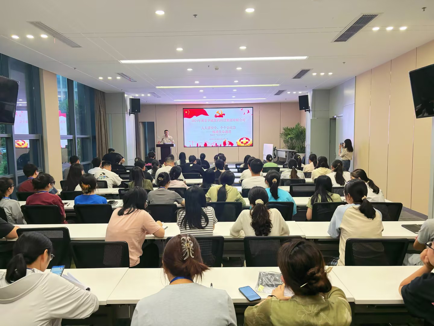 線上線下齊發力,安全宣傳見實效!為充分發揮安全生產月宣傳教育源頭性、基礎性作用,華威醫藥找準關鍵點、緊抓突破口,堅持“安全工作,宣傳先行”,持續在兩棟研發大樓的安全宣傳上下功夫、做文章。通過設置宣傳展板、宣傳海報、以及大屏幕視頻展示等宣傳舉措,持續地、直觀地將安全宣傳工作落到實處,引導員工學會發現和消除安全隱患。