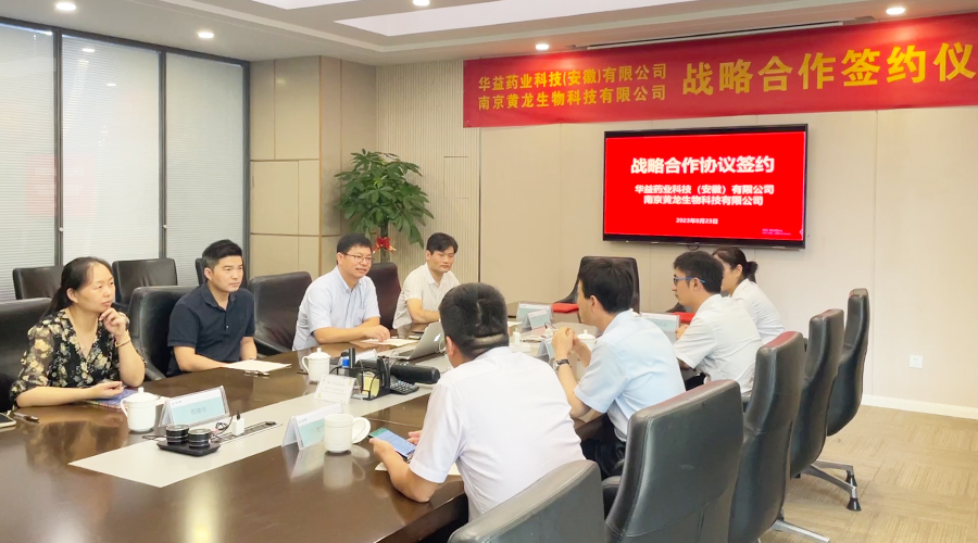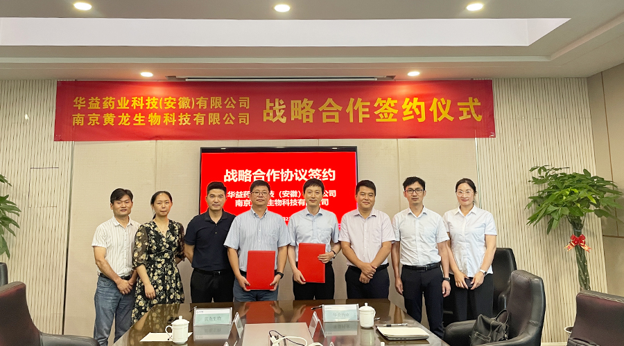 近日,華益藥業科技(安徽)有限公司(以下簡稱華益藥業)與南京黃龍生物科技有限公司(以下簡稱黃龍生物)在南京舉行戰略合作簽約儀式。雙方達成共識,通過建立起長期、穩定的戰略合作伙伴關系,實現強強聯合,發揮各自技術領域與市場資源優勢,開創合作共贏新局面。華益藥業董事長高煜、國內營銷中心總經理周朝遜,華威醫藥董事長黃輝、黃龍生物總經理許毅等共同出席并見證簽約儀式。
